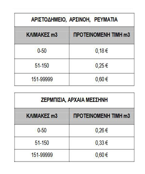 - Στη Δ.Κ Μεσσήνης & Τ.Κ. Μαυροματίου Παμίσου ισχύει Τ.Χ.Υ. 0,40€/m3