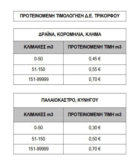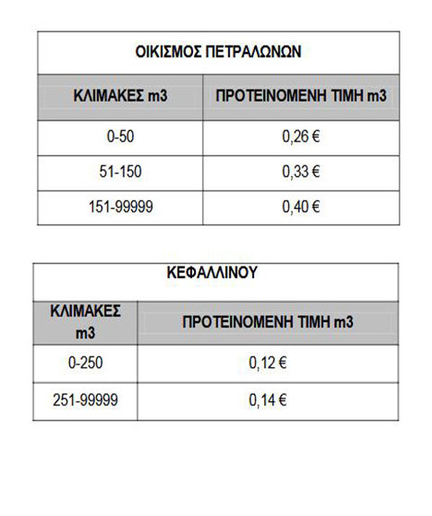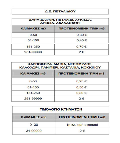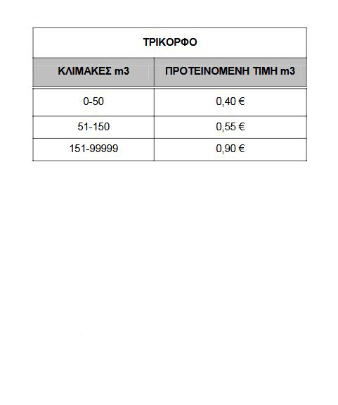 - Στις Τ.Κ. Αβραμίου & Λευκοχώρας ισχλυει πάγιο 6€, Τ.Χ.Υ. 0,25€/m3